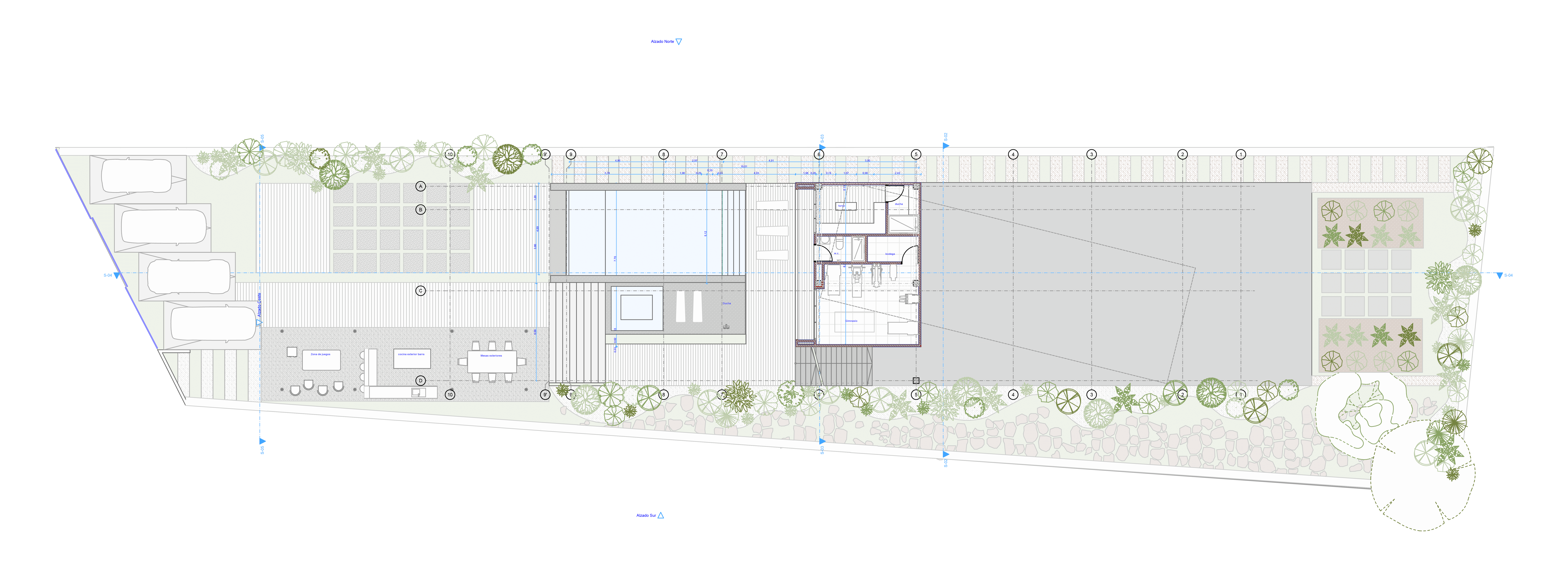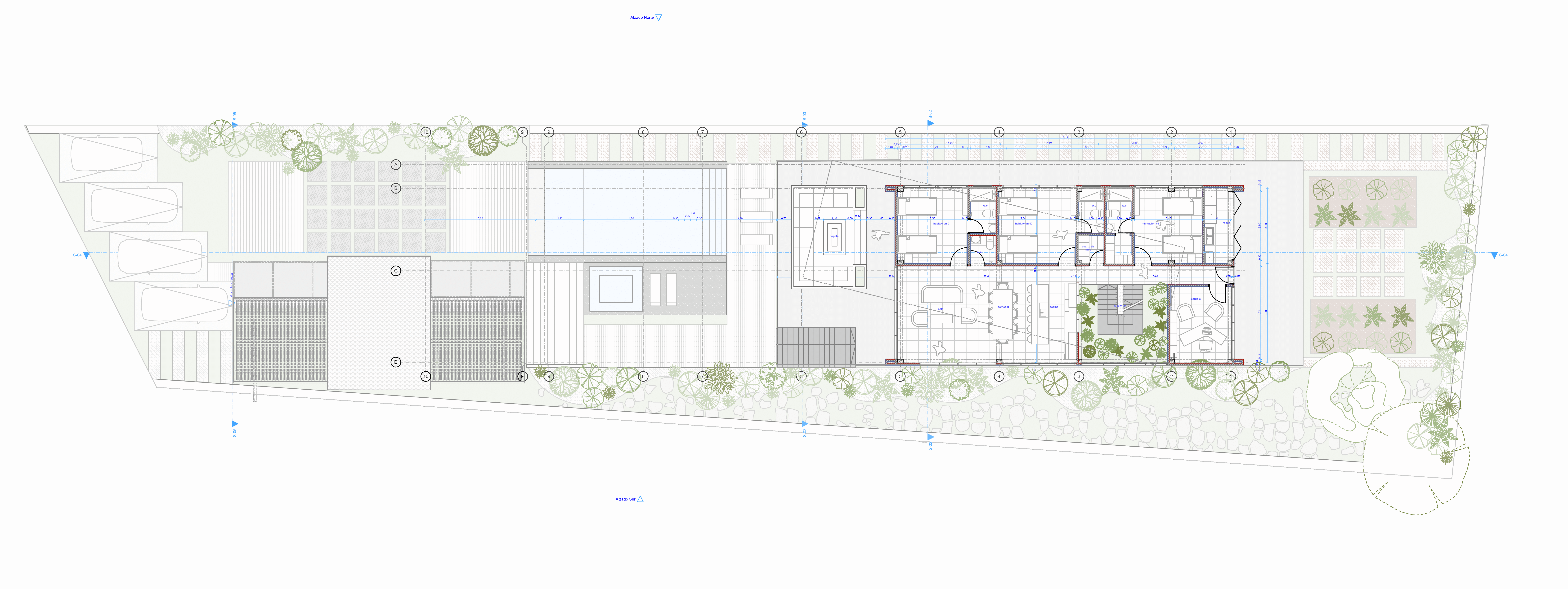 Finalmente uno de los elementos más característicos es el bloque flotante en estructura metálica, que permite un gran voladizo y un elemento de gran impacto a nivel de diseño.