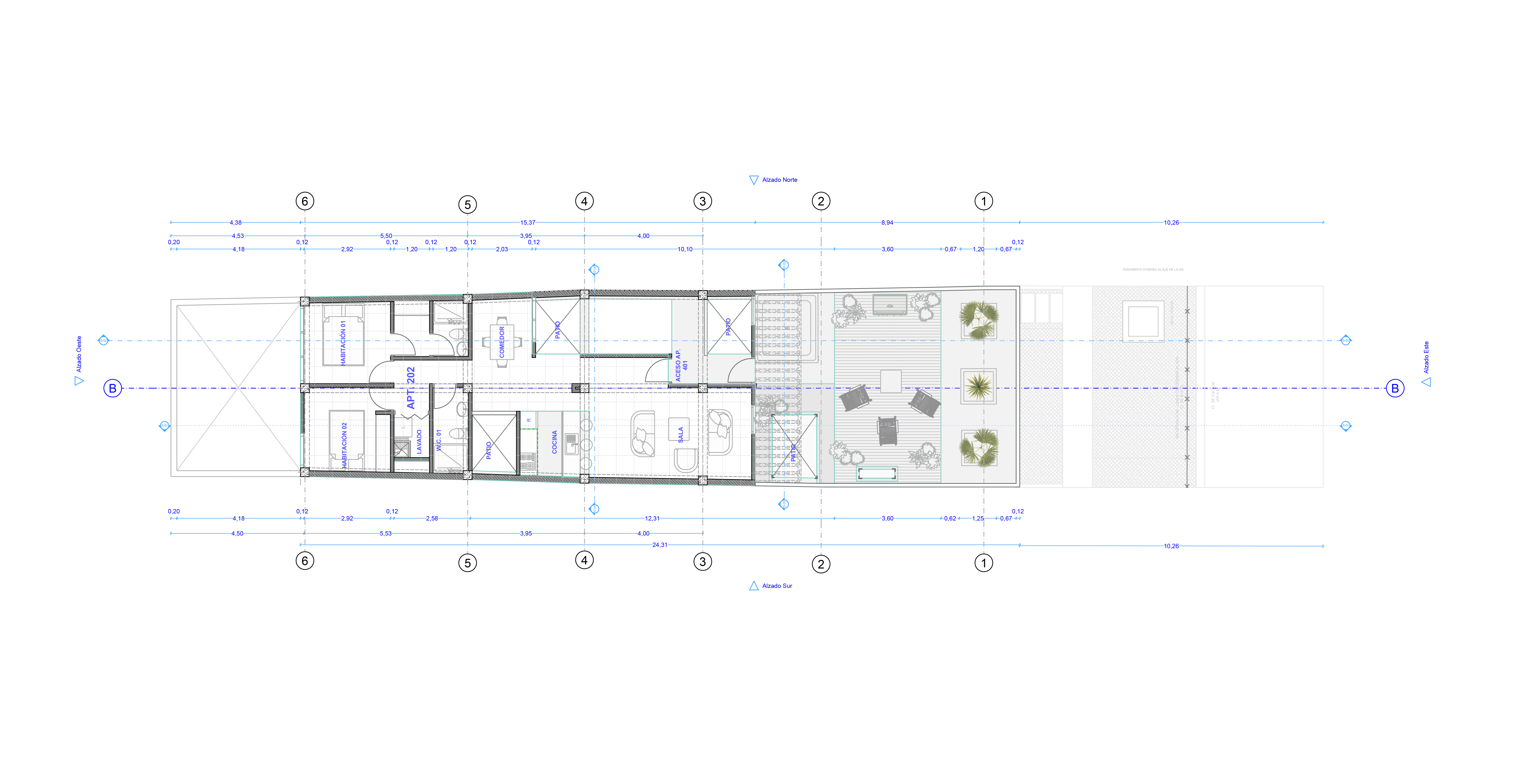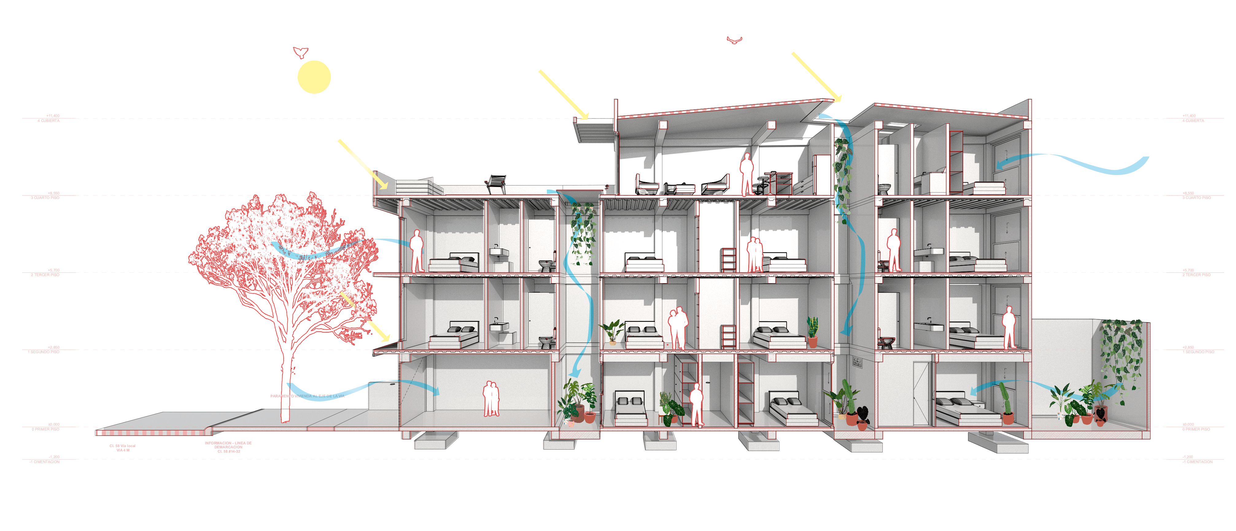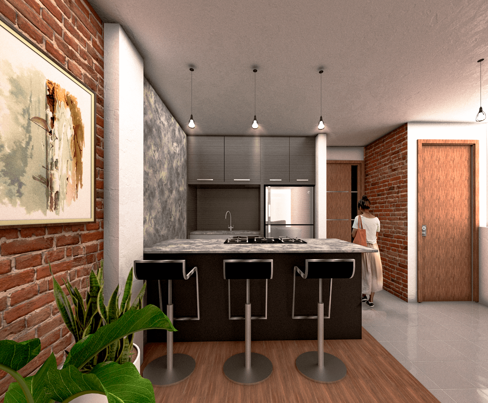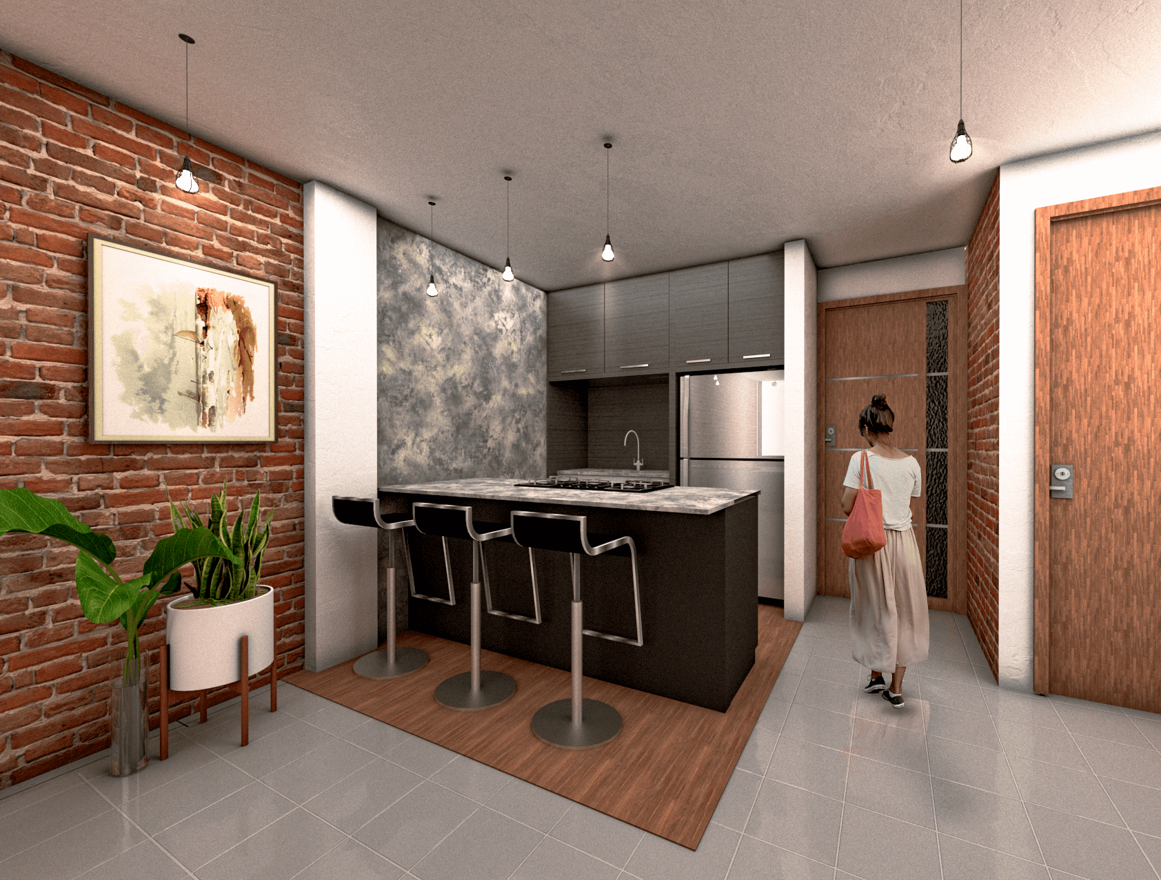 Al interior se diseñaron varios tipos de apartamentos, en primer piso uno mas amplio y dos mas pequeños en los pisos de arriba. Al interior los acabados y mobiliario se diseñaron a gusto del cliente y dentro del presupuesto acordado.